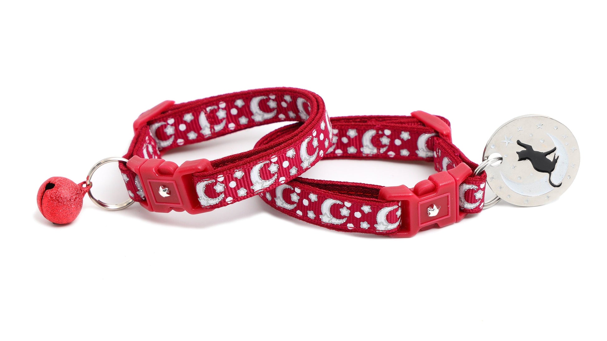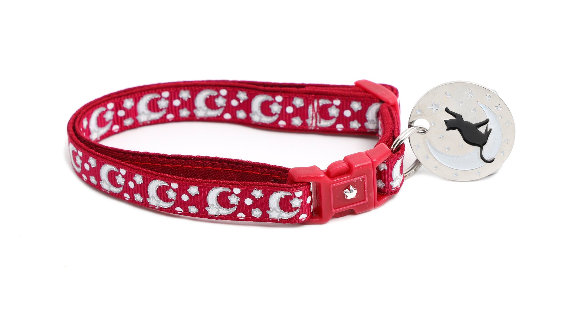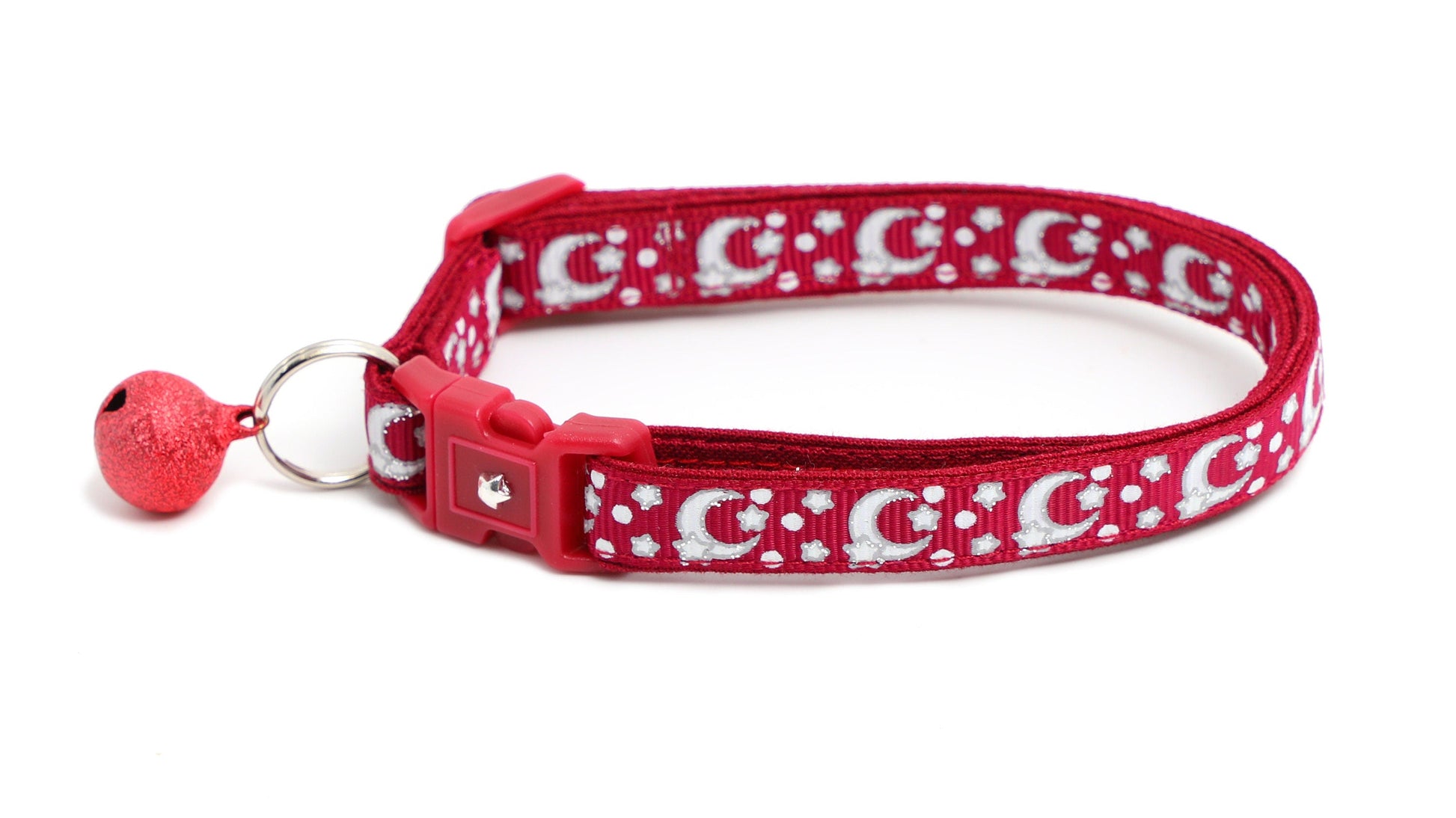 Silver Moons and Stars on Dark Red Cat Collar