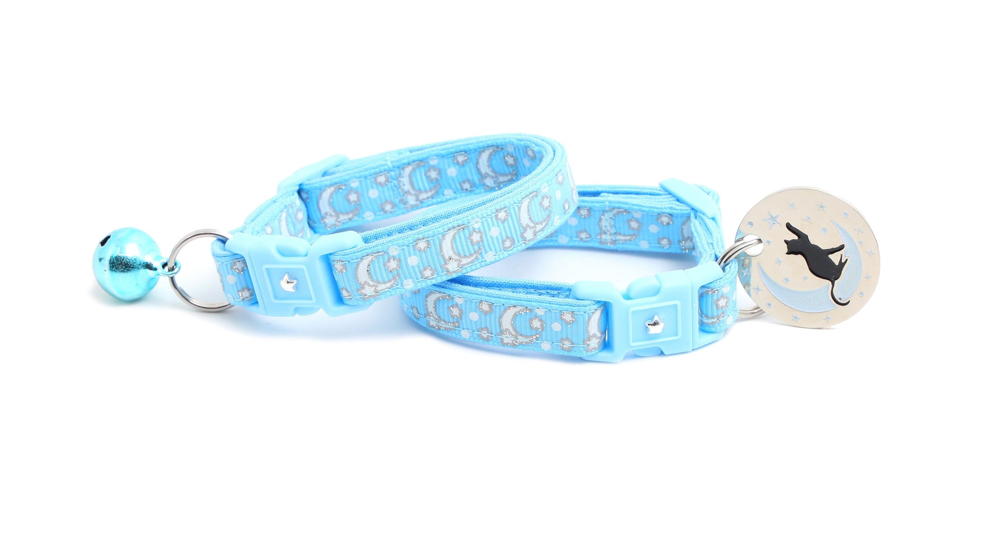 Reinforced cotton makes a great collar material because it is soft, light, as well as sturdy. It is also machine washable which all pet owners know is a "must have!". We use breakaway clips on our cat collars for your kitty's safety. If you insist on a non-breakaway collar I can make one custom for you if you contact me. The bell can easily be removed if you prefer.